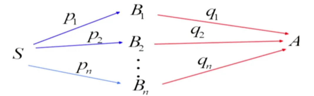 设 P ( B j ) = p j , P ( A ∣ B j ) = q j , j = 1 , 2 , . . . , n . \text{设}P(B_j)=p_j,P(A|B_j)=q_j,j=1,2,...,n. 设 P ( B j ) = p j , P ( A ∣ B j ) = q j , j = 1 , 2 , ... , n .