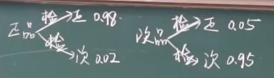 P ( B ) = P ( B 1 ) P ( B ∣ B 1 ) + P ( B 1 ‾ ) P ( B ∣ B 1 ‾ ) = 0.9 × 0.98 + 0.1 × 6.05 = 0.887 P(B)=P(B_1)P(B|B_1)+P(\overline{B_1})P(B|\overline{B_1})=0.9\times0.98+0.1\times6.05=0.887 P ( B ) = P ( B 1 ) P ( B ∣ B 1 ) + P ( B 1 ) P ( B ∣ B 1 ) = 0.9 × 0.98 + 0.1 × 6.05 = 0.887